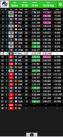 - Hero (#82), sister cars and class leaders can be immediately located by