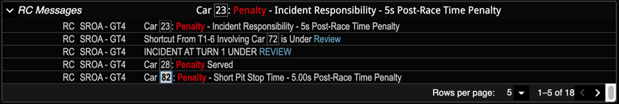 NEW The RC Messages panel highlights race control messages.