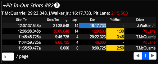 Pits In-Out Stints