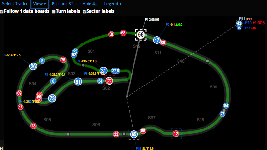 The Track Map individually models car movement using their earlier sector times.